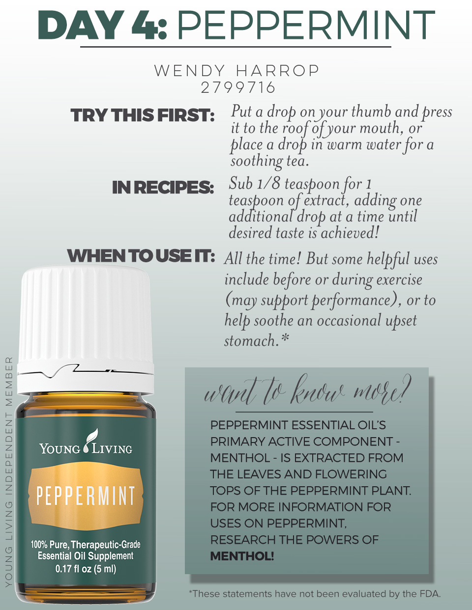 Welcome to my journey with essential oils. This blog is my testimonial. I have no medical background and speak only of my own experiences with essential oils. My posts are in no way intended to be considered medical advice. Young Living member #2799716