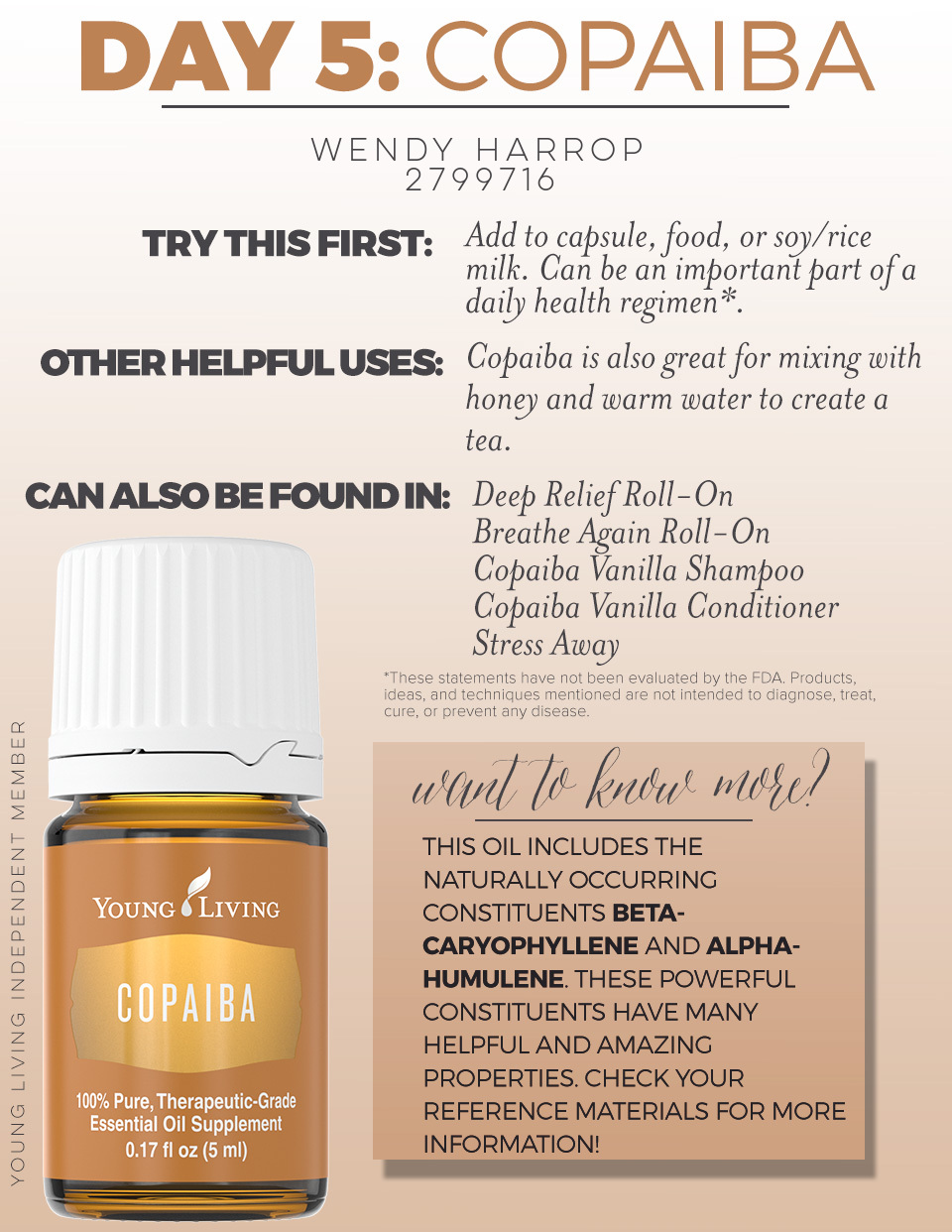I find copaiba essential oil fascinating. It is known as an amplifier, in other words, it strengthens the effects of other oils it's blended with. I have never used copaiba on it's own, but it seems like I am using it in every blend I maker - for my post-workout salve, for my skin firming oil, along with our focus roller ball blend, and some of our night time diffuser blends. (Future posts coming about my favorite roller ball and diffuser blends!) It is a lesser known oil, and I'm excited to continue to learn about it!